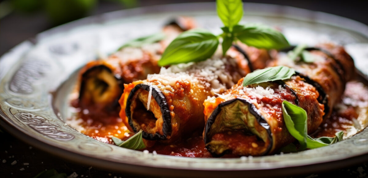 • Involtini di melanzane: Zarte, gegrillte Auberginenröllchen mit einer Füllung aus Kochschinken und geräucherter Scamorza – herzhaft, cremig, unwiderstehlich.