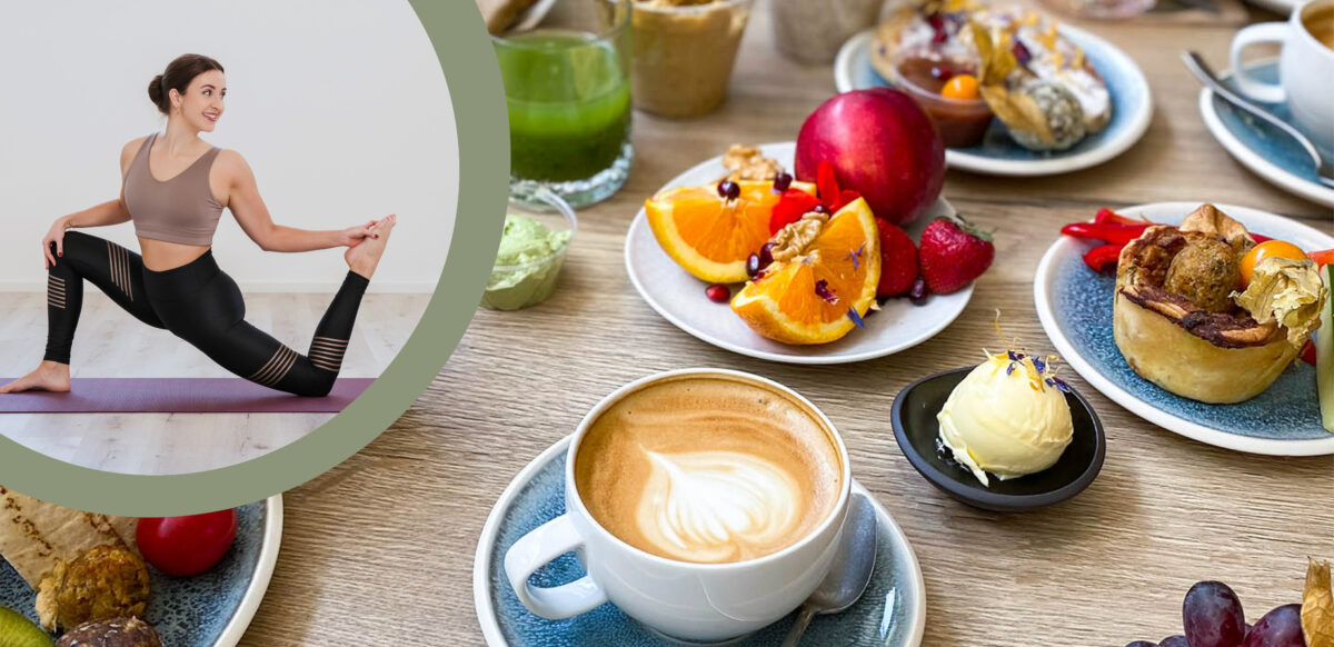 Folgende Leistungen sind inkludiert: Yoga-Einheit + vegetarisches Brunch-Buffet + ein gratis Heißgetränk